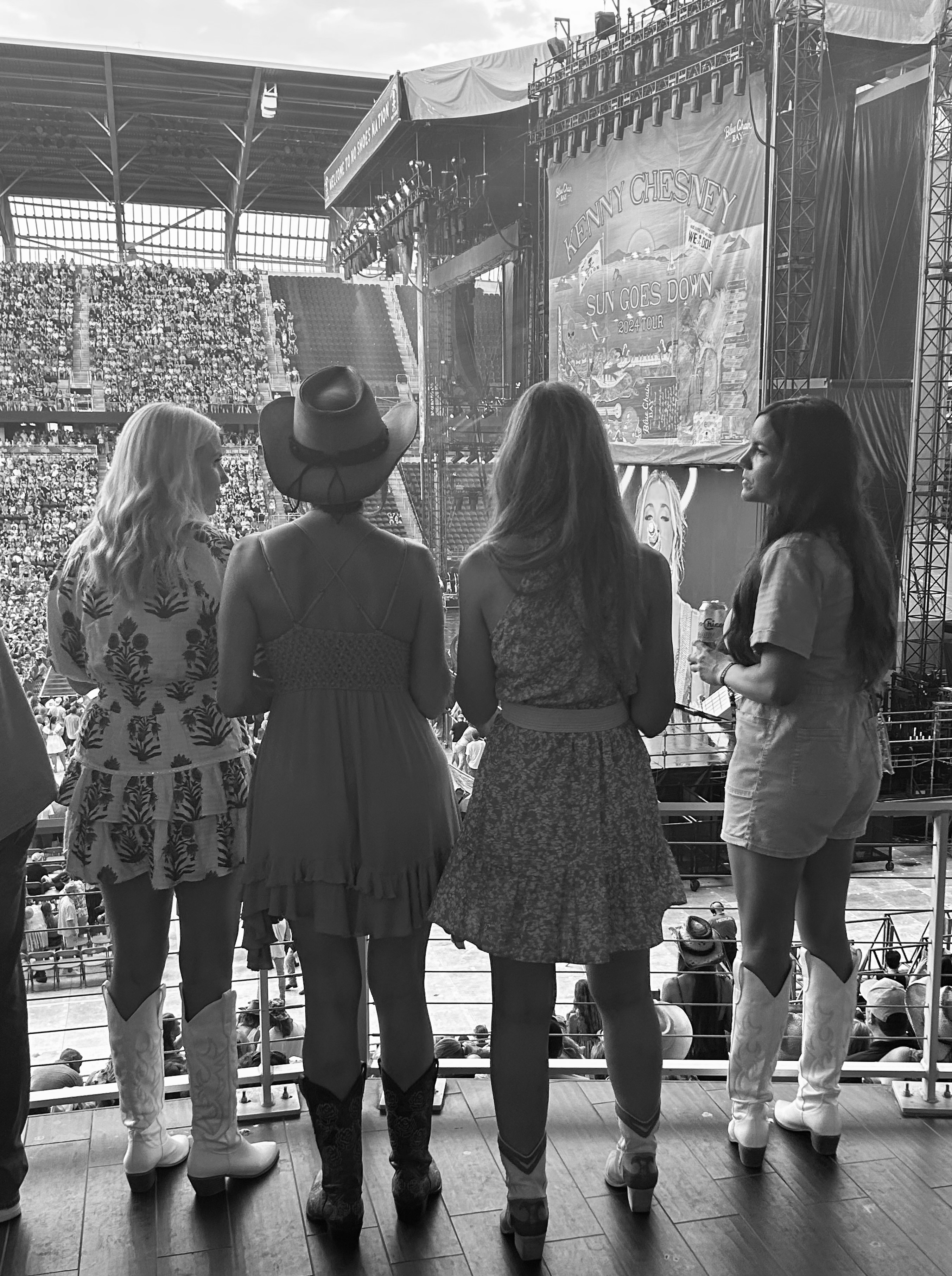 And speaking of white cowboy boots, when did they start being the number one accessory for concert going young ladies?  As I watched the line of them standing briefly in front of me, I couldn’t help but think of a Miller family tale.  And as Kennys’ songs tend to tell stories of the past, there is a very entertaining episode involving my Uncle Merle, Aunt Diana, Uncle Rod and my mom that could start out, “A fashionable, young lady awaited her date to pick her up for a western themed Cal Poly dance wearing white majorette boots. And end with Merle watched his siblings wrestling  over brown shoe polish and his sisters cowboy boots, completely awe stuck.”  But that is a yarn for another time.