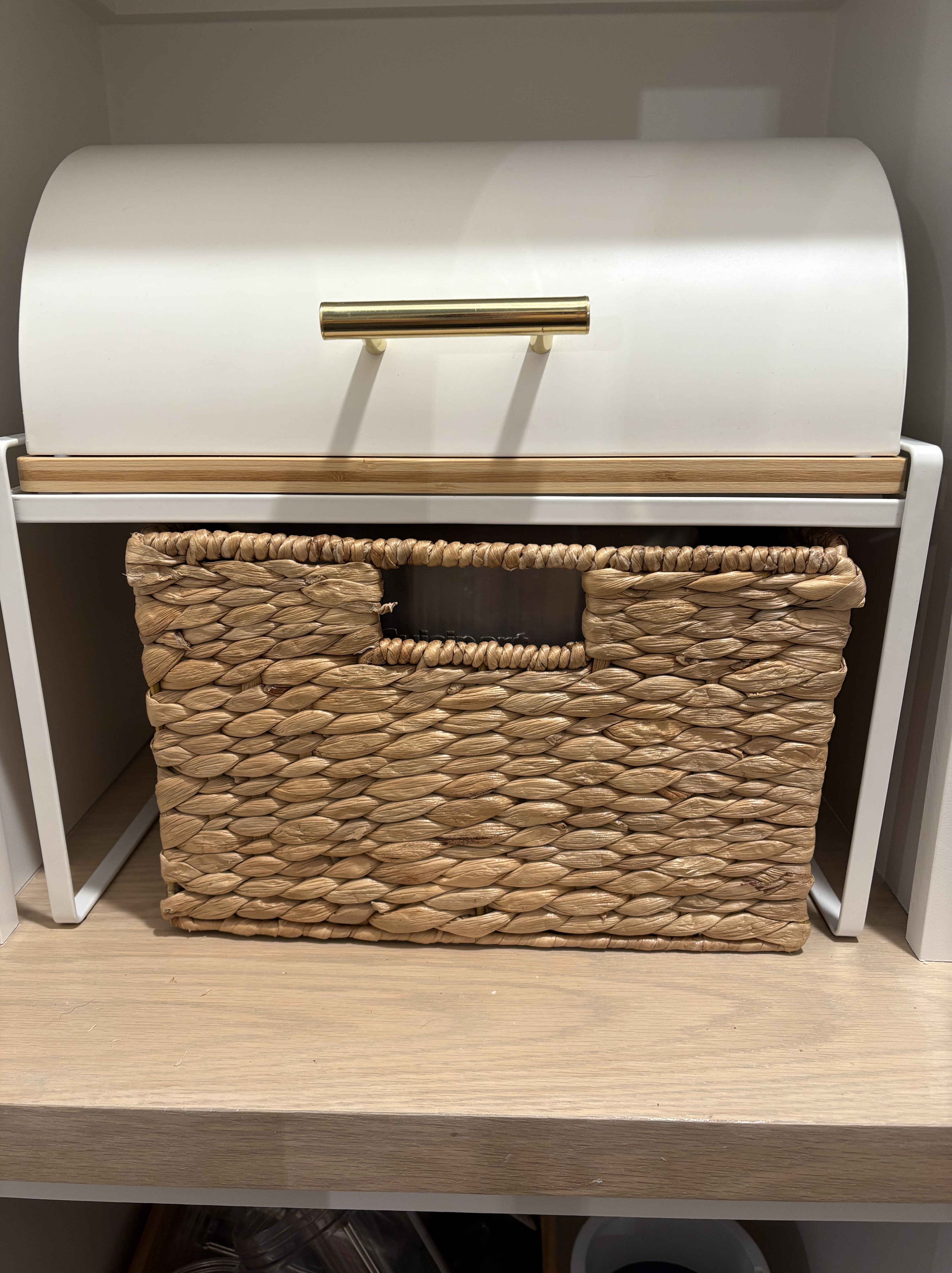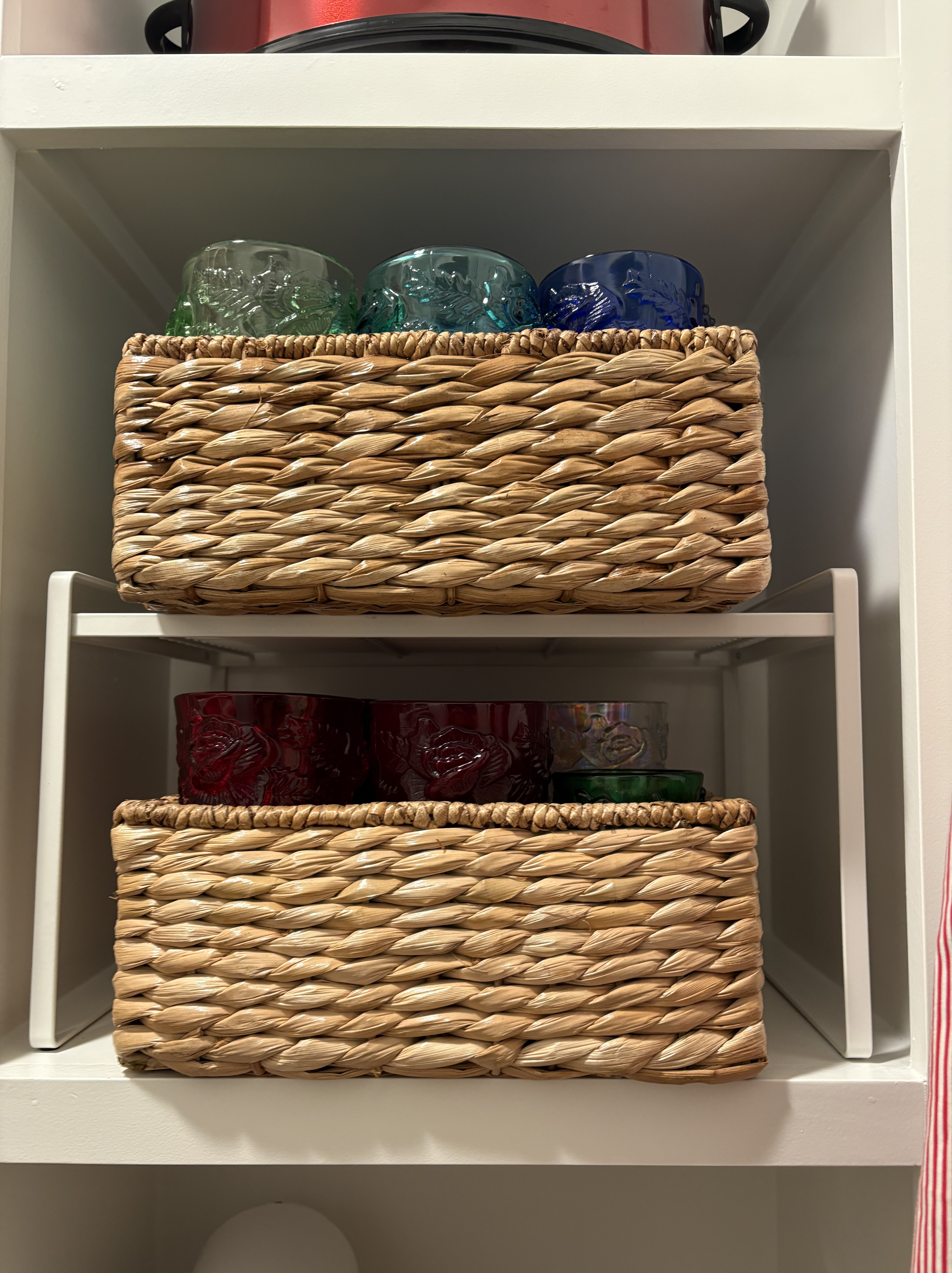 Maybe I have adapted these habits, because I can squirrel more stuff away than the furry creatures that house nuts for the winter.  True confession, the joy created in my new pantry has made me consider posting a “keep out” sign to those that could disrupt the order. I can’t begin to express the happiness experienced when I hid the toaster away in the basket under the bread box. No cord hanging out, no crumbs laying around, and both pieces purchased with reward funds from Pottery Barn and Kirklands. Pure bliss. How can one not be grateful? Who knows what new cool sorting device I will unearth or space waiting to be rearranged in the next 365 days. It simply will be a consistent, uniform approach to order.