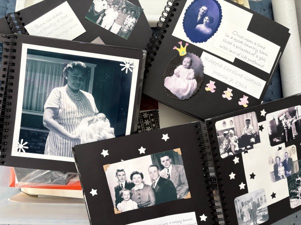 History has a sneaky way of showing a pattern in need of a directional change.  Completing Kayla’s birthday project reminded me of a similar project attempted many moons ago.  Circa 2003, I discovered scrapbooking and the fact that I could print photos in my home office.  After an inspirational moment shopping at the neighborhood craft store, walking out with not just one book, but the notion to complete four identical masterpieces.  My subject matter was my grandmother Roberta.  The queen to the kingdom, at least in the eyes of me, my brother Johnny and my cousins Kelly and Stacy.  Visions of a poetic memento, complete with vintage photos, the plan was to complete as a Christmas surprise.